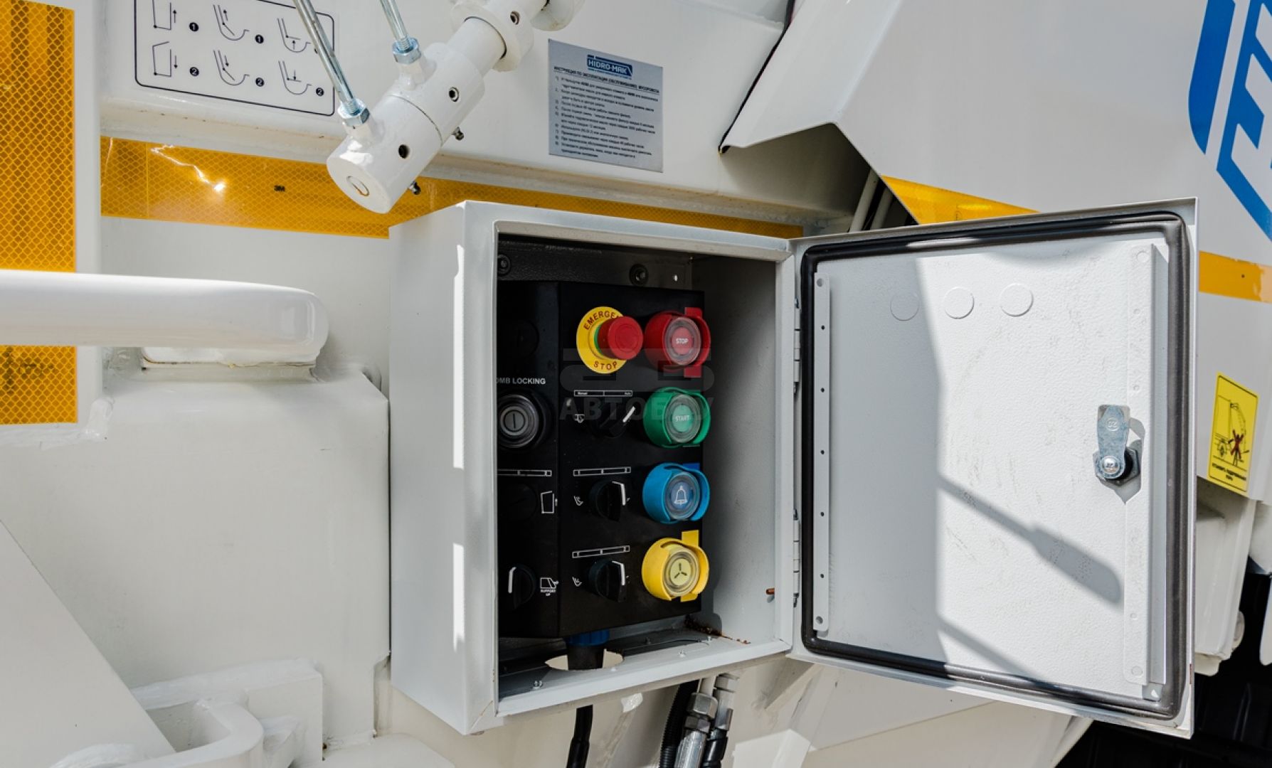 Основной бункер разгружается выталкивающей плитой после поднятия заднего борта. Операция осуществляется при помощи рычагов расположенных за кабиной. В процессе разгрузки применяются кнопка «подгазовки» и кнопка «одиночного цикла», необходимая для разгрузки мусора из загрузочного бункера при поднятом загрузочном бункере.