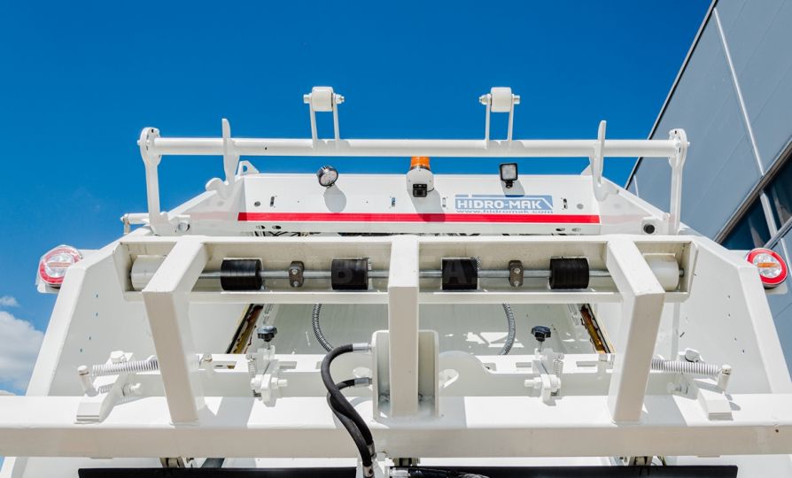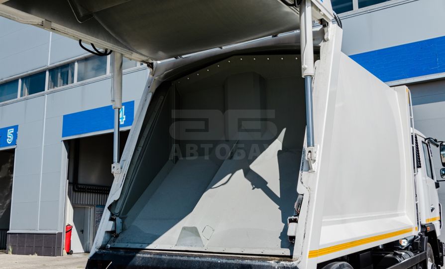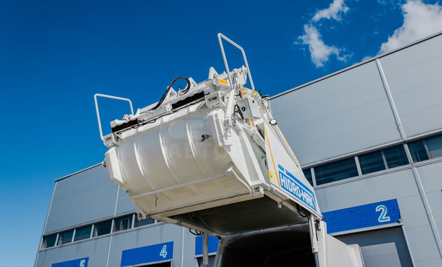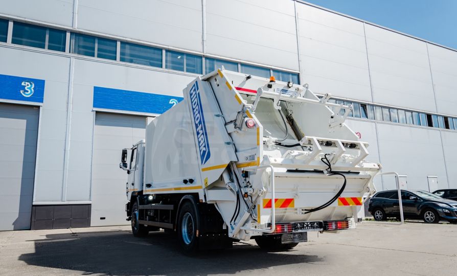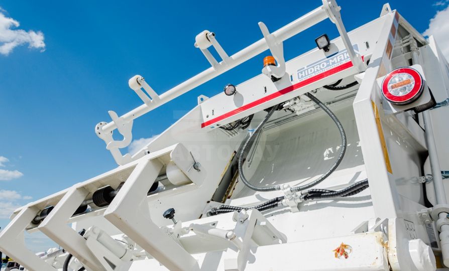Мусоровозное оборудование установлено на шасси с полной массой 18 тонн. Оборудование оснащено кантователем контейнеров для механической выгрузки мусора из контейнера объёмом 120, 240, 360 литров, баков 0,75 и 0,8 куб. м. и евроконтейнеров 1,1 куб. м. в приемный бункер мусоровоза.