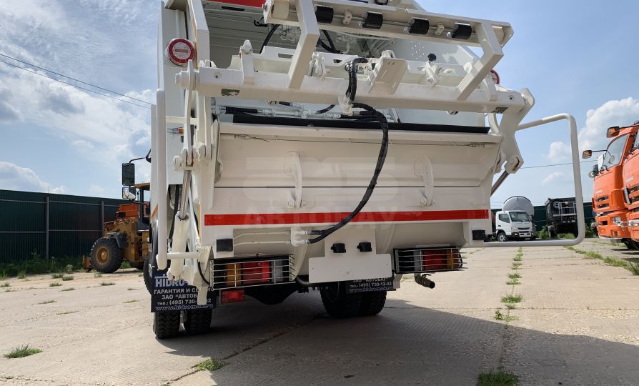 Мусоровоз имеет прессующую плиту, изготовленную из высокопрочной стали, выполняющую функцию забора и прессования отходов из загрузочного бункера в основной (приводится в действие четырьмя гидроцилиндрами), и выталкивающую плиту, которая выполняет функцию обратной нажимной пластины и позволяет производить процесс подпрессовки. В зависимости от плотности отходов, коэффициент уплотнения может увеличиваться до 1:6.