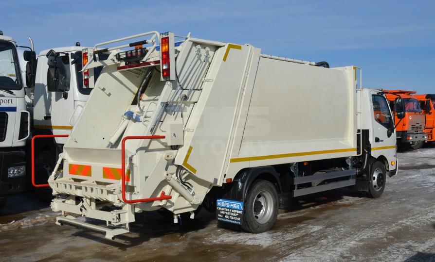 Мусоровозное оборудование установлено на шасси с полной массой 7,5 тонн. Оборудование оснащено кантователем контейнеров для механической выгрузки мусора из контейнера объёмом 120, 240, 360 литров, баков 0,75 и 0,8 куб. м. и евроконтейнеров 1,1 куб. м. в приемный бункер мусоровоза.