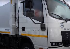 Перед вами автомобиль на шасси КамАЗ Компас, это китайское шасси, которое локализовано для производства России и Камаз освоил производство этих автомобилей, успешно используется в России. Да, это обычный мусоровоз, но у него есть определенные характеристики, которые позволяют экономить на топливе потому что двигатель сделан по самому высокому уровню экологической безопасности, расход которого значительно меньше, чем у других грузовиков.